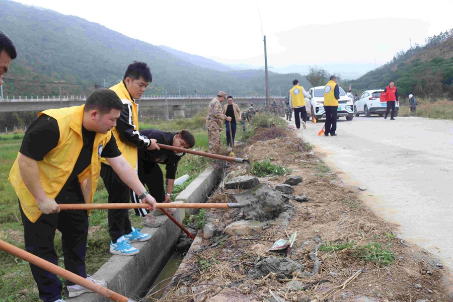 日前,惠東縣高潭鎮(zhèn)召集志愿者約80人舉行“植綠清淤”主題黨日活動;顒赢斕,在高潭鎮(zhèn)水口村龍珠貴植樹點,志愿者們揮鍬鏟土、挖坑運苗、栽植新綠、培土澆水……一派忙碌景象。同時,志愿者們還到高潭鎮(zhèn)黃沙村小學前開展清淤行動。黨員干部和志愿者為鄉(xiāng)村路基、溝渠清落葉、鏟淤泥、撈雜物、除雜草,保障春耕灌溉,提升農村人居環(huán)境質量。