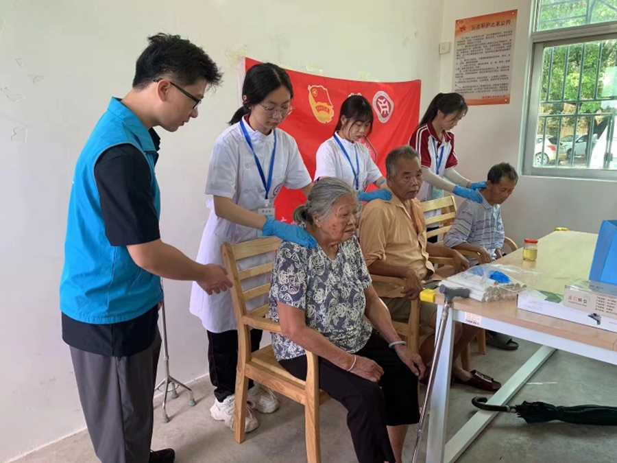 醫(yī)護(hù)人員為老人推拿。 惠州日報(bào)記者蔡偉健 通訊員郭曉鋒 攝