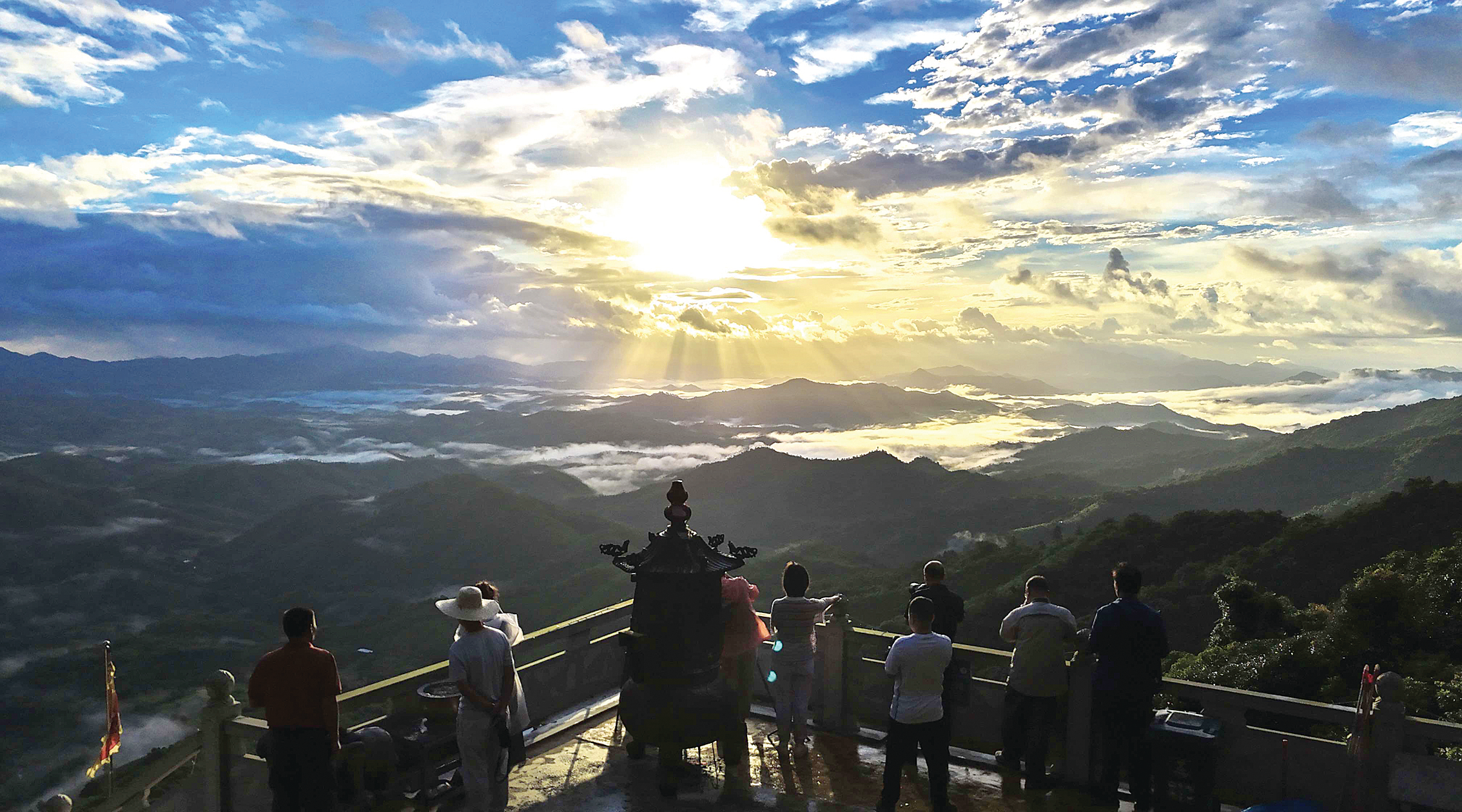 “這里的山路算是好走,若不熟悉路況,轉(zhuǎn)彎的地方需要減緩速度,注意行駛安全!惫ぷ魅藛T說(shuō)。一路上云霧縹緲。5點(diǎn)25分,一行人到達(dá)寶口鎮(zhèn)聯(lián)和村雙興嶂西蓮寺平臺(tái),據(jù)介紹,因當(dāng)?shù)匚挥谖髦脑搭^,森林茂密,水源豐富,在烏禽嶂、雙興嶂等蓮花山脈的封鎖下,在日出前后氣溫驟變的作用下,大量水蒸氣易形成云海奇觀!斑@云海值得一來(lái),沒(méi)想到惠東還有這般美景!睌z影家們紛紛贊嘆。