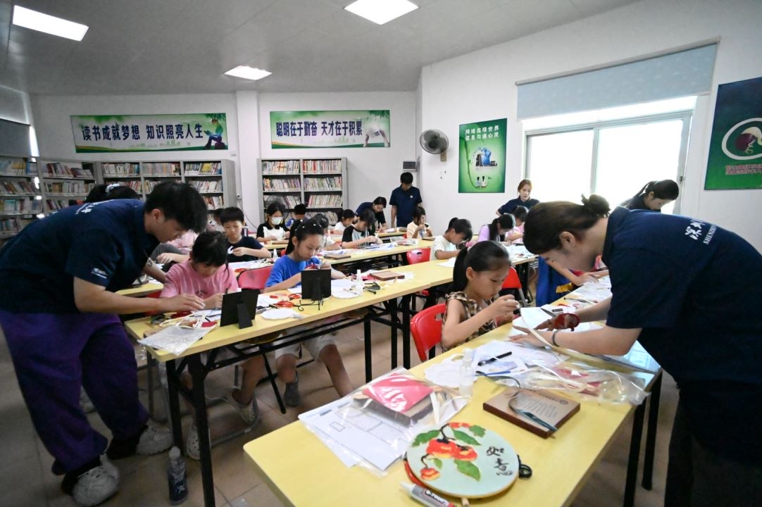 孩子們在非遺培訓班體驗手作之美。 惠州日報記者蔡偉健 特約通訊員劉靜靜 攝