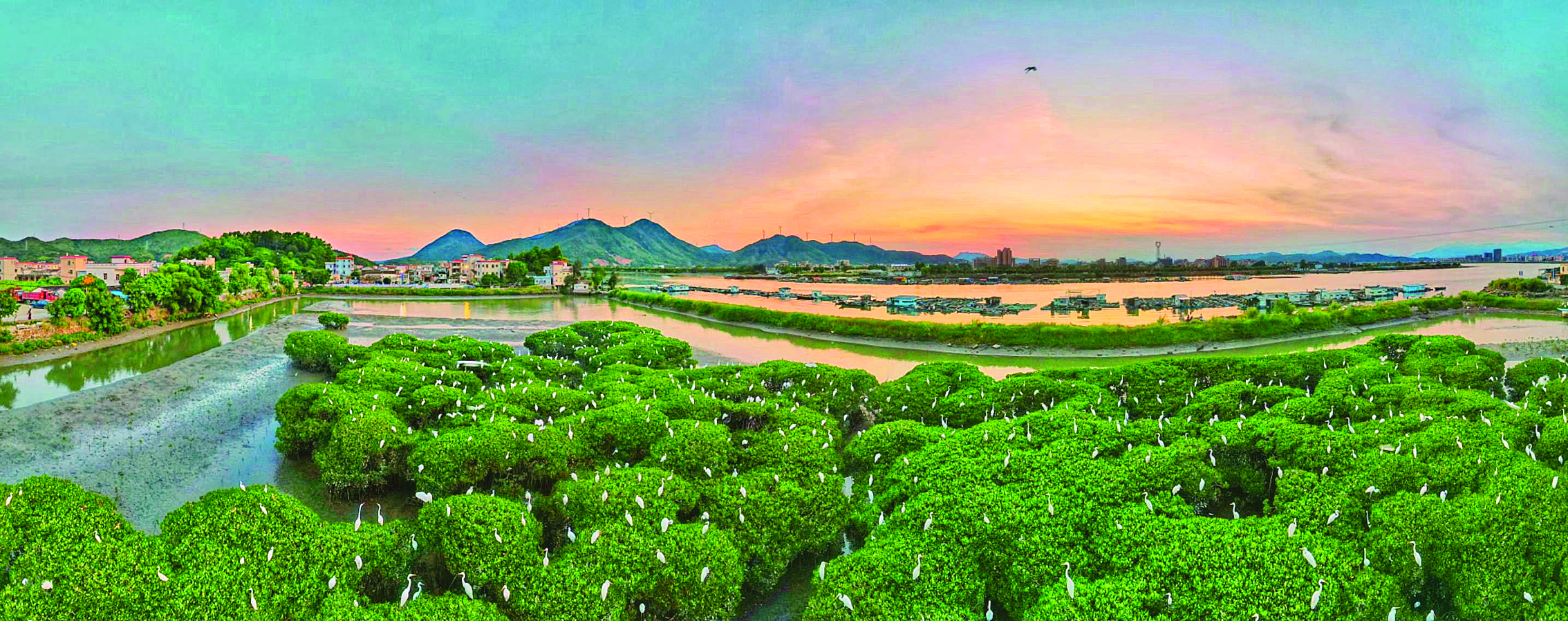 惠東縣鐵涌鎮(zhèn)油麻地村的灘涂上,連片的紅樹林正在蓬勃生長,郁郁蔥蔥。此前,當(dāng)?shù)匾呀ǔ苫輺|縣好招樓濕地公園一期。如今,紅樹林成為鷺鳥樂園,每到黃昏,便呈現(xiàn)“落霞與白鷺齊飛”“萬鳥歸巢”的美麗畫面。