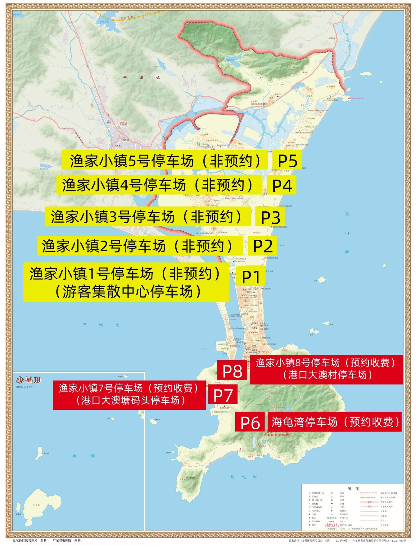 (二)預(yù)約停車服務(wù)。實(shí)施臨時(shí)交通管理期間,進(jìn)入臨時(shí)管理區(qū)域內(nèi)的7座及以下機(jī)動(dòng)車,通過“惠州海龜灣”訂閱號(hào)預(yù)約3個(gè)收費(fèi)停車場(chǎng),分別為海龜灣停車場(chǎng)和漁家小鎮(zhèn)7號(hào)、8號(hào)停車場(chǎng)。