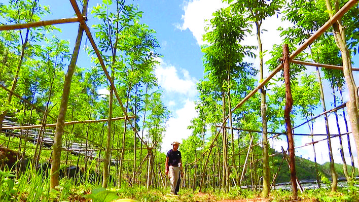 香農(nóng)在查看綠棋楠生長情況。