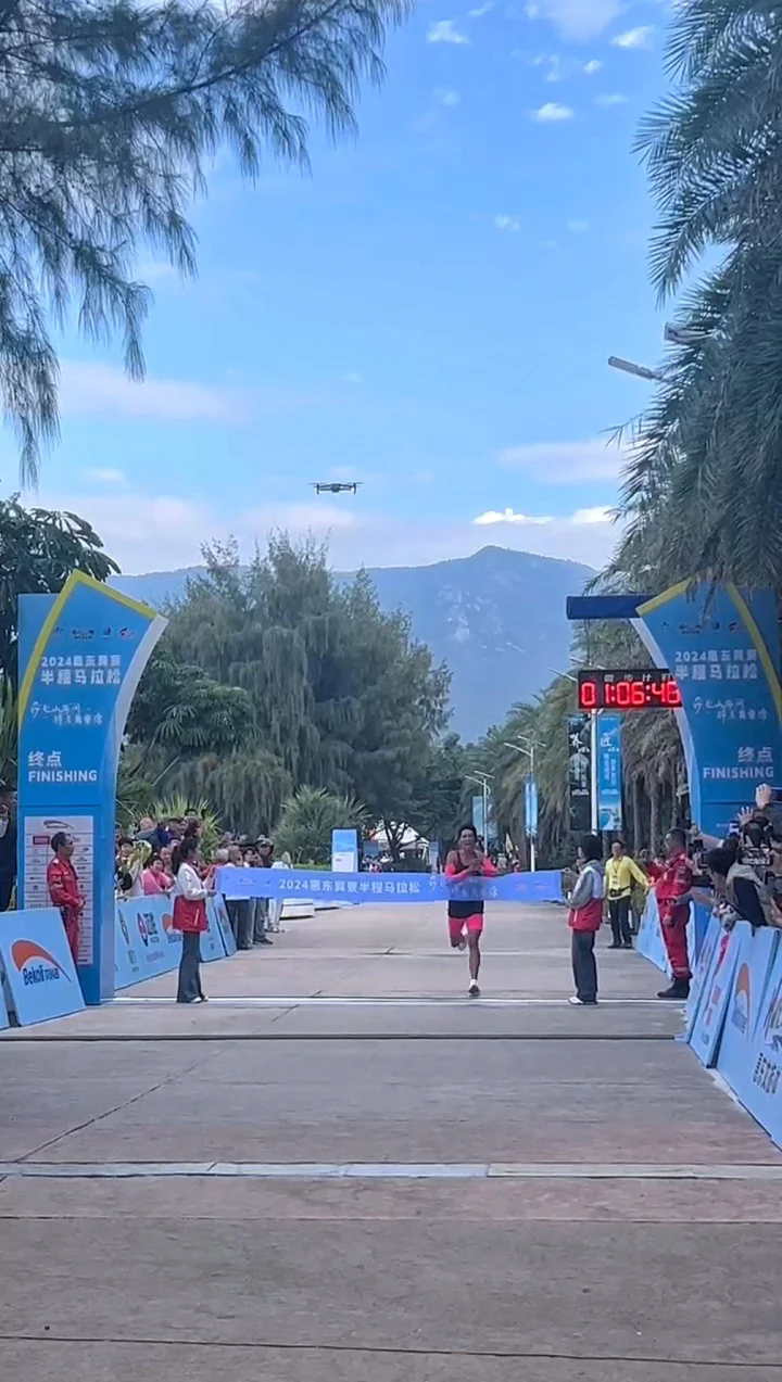 朱卿以1小時15分41秒獲得女子半馬第一名。
