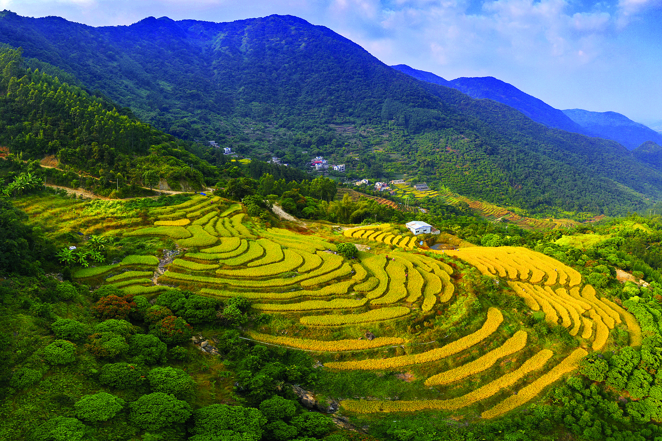 九龍峰旅游區(qū)長坑村角峰村民小組梯田美不勝收。