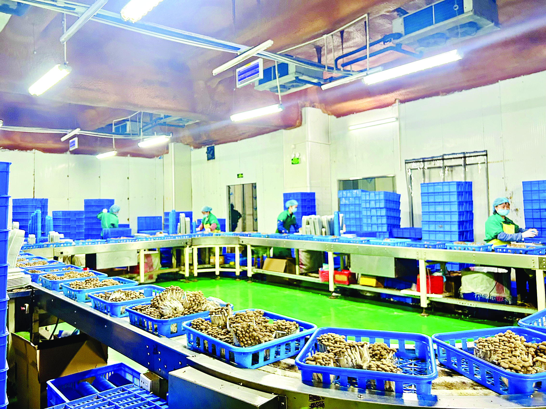 日前,記者來到該公司包裝車間看到,不少工人正忙碌地把摘好的蘑菇分裝打包,貼上標(biāo)簽等待運(yùn)往目的地。這里共有100多名工人,其中大部分是周邊的村民。