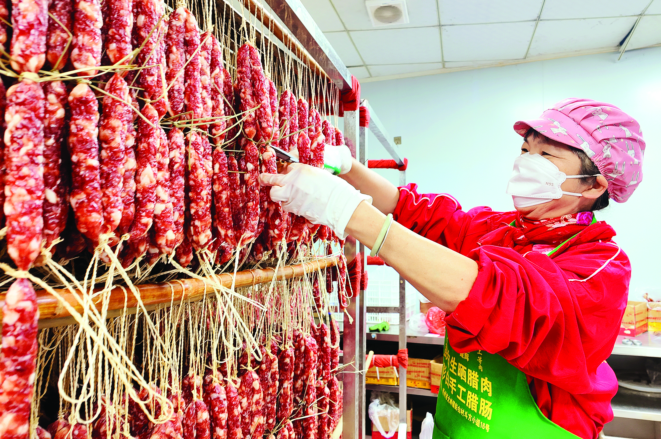 工人在整理精選的臘腸;葜萑?qǐng)?bào)記者鐘暢新 攝