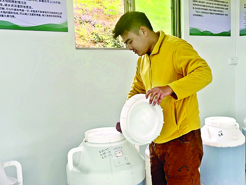 走進(jìn)寶口鎮(zhèn)佐坑村的惠州市源尚水稻合作社,肥料倉(cāng)庫(kù)內(nèi)整齊擺放著一桶桶標(biāo)注好用料和時(shí)間的白罐。不同于以往的化肥和農(nóng)藥,掀開這些白罐的蓋子,一股股蔬果醬料的香氣撲鼻而來。