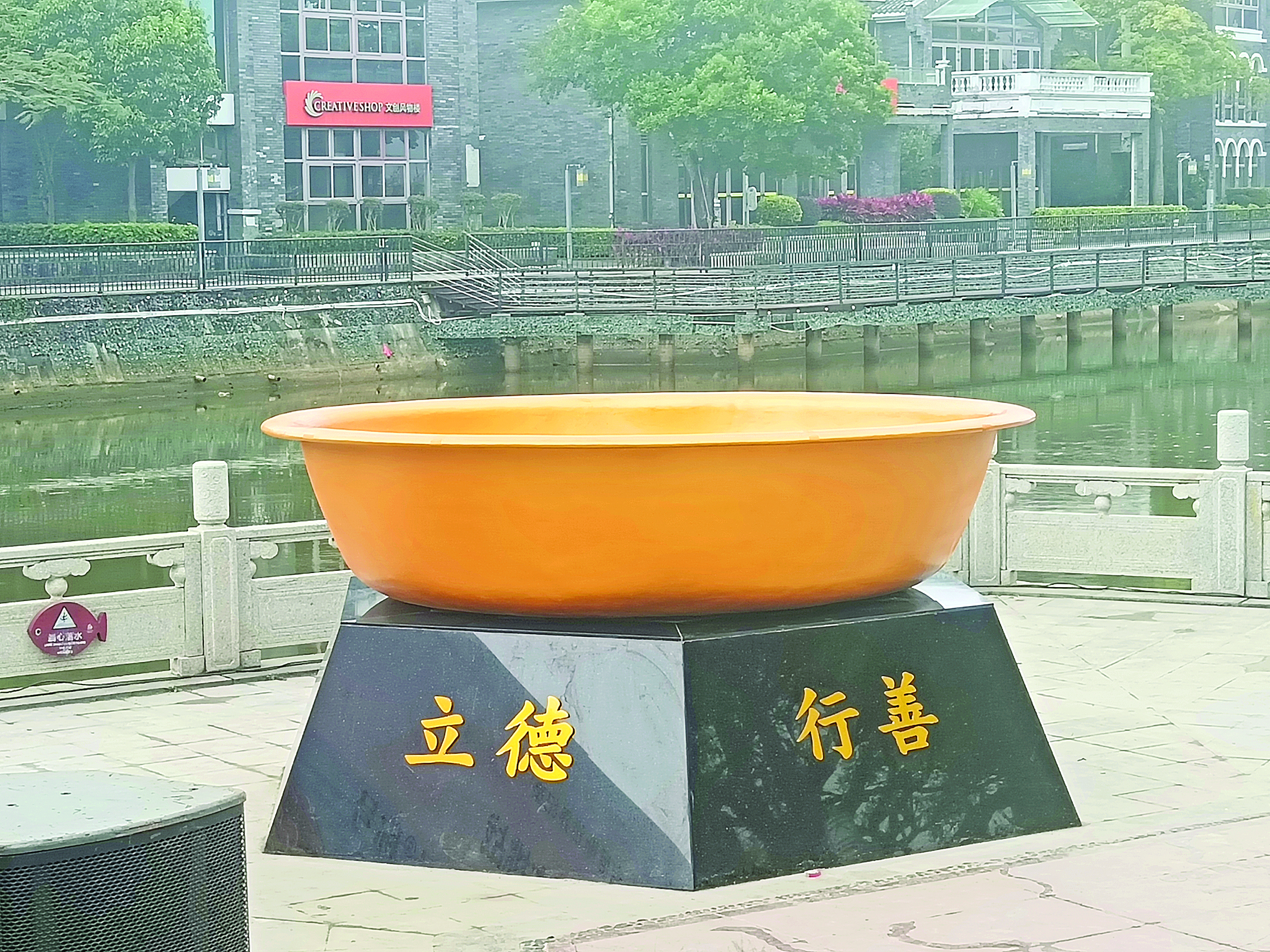 “好大的盆子!”4月18日,位于巽寮天后宮嶺南民俗文化街湖邊一個(gè)碩大金色的青銅盆,讓經(jīng)過的游客嘖嘖稱奇,并不斷與其合影。據(jù)了解,這是巽寮旅游行業(yè)協(xié)會(huì)定制的青銅盆,旨在當(dāng)天進(jìn)行一場(chǎng)“最大青銅盆”吉尼斯世界紀(jì)錄挑戰(zhàn)活動(dòng)。“經(jīng)過現(xiàn)場(chǎng)測(cè)量,該青銅盆直徑達(dá)3.235米,深0.83米,成功成為‘最大青銅盆’吉尼斯世界紀(jì)錄。”現(xiàn)場(chǎng),來(lái)自吉尼斯世界紀(jì)錄的工作人員進(jìn)行詳細(xì)的測(cè)量后,在一陣熱烈的掌聲中宣布了這個(gè)結(jié)果。