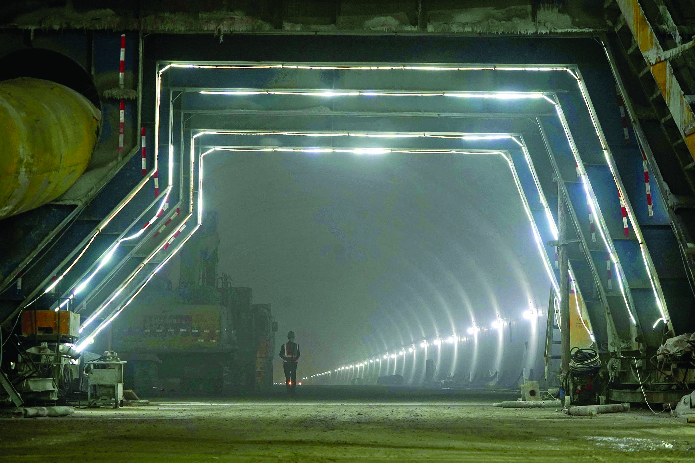 鷓鴣洞隧道內(nèi),配套施工加速進行。