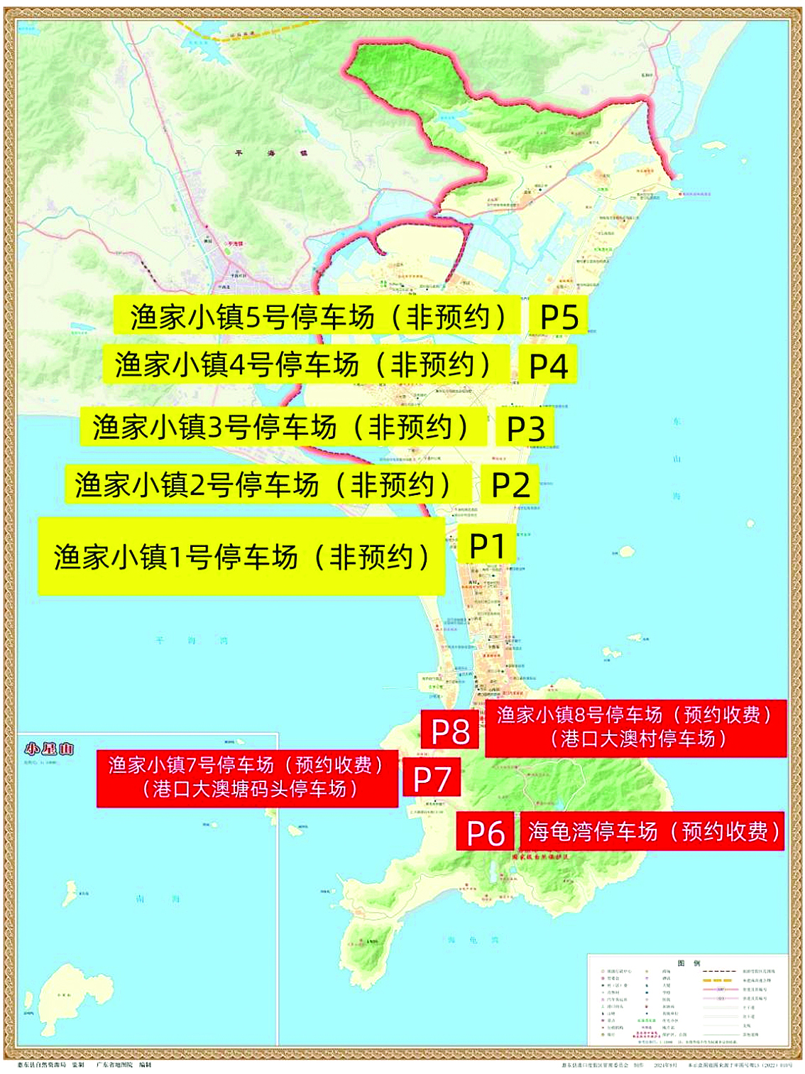 2025年國(guó)慶節(jié)、中秋節(jié)假期海龜灣景區(qū)及周邊停車(chē)場(chǎng)示意圖。 惠東縣港口度假區(qū)管理委員會(huì)供圖