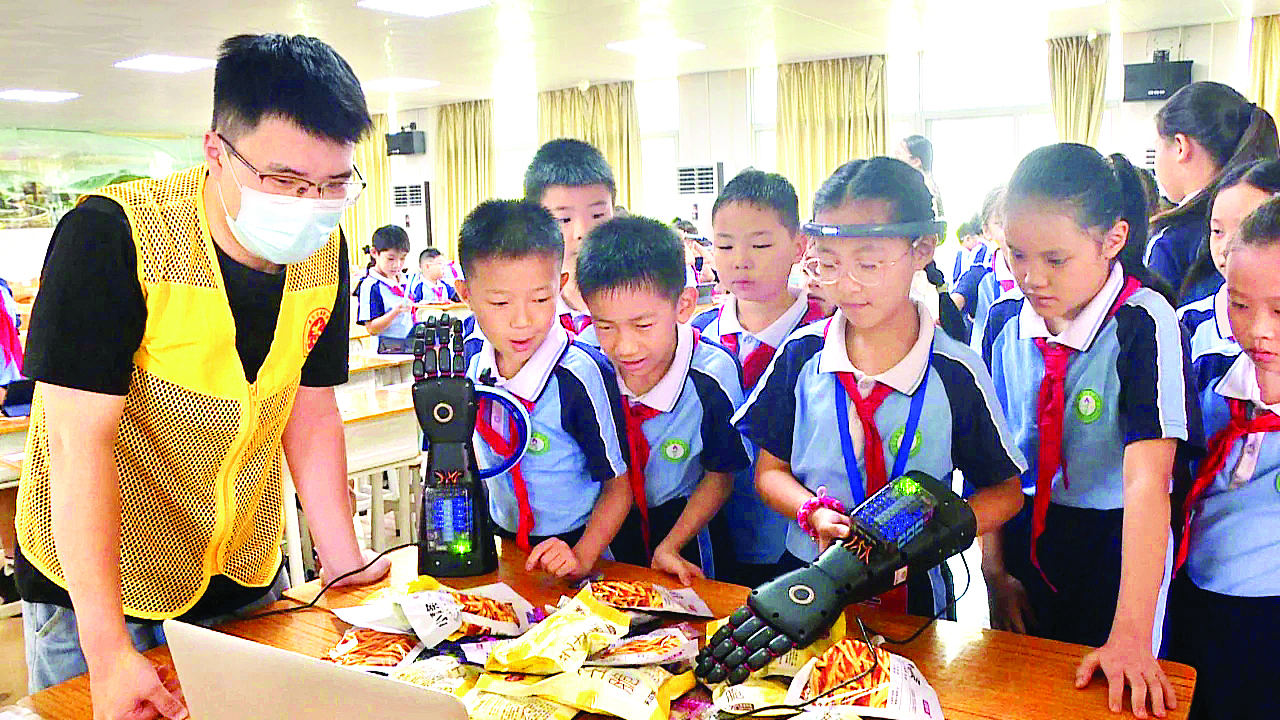 在活動現場,科普講師系統介紹了腦機接口技術及腦電設備的設計原理,并通過視頻呈現了智能仿生手的實際應用。講師還通過講述古今科學家矢志報國、勇攀高峰的感人事跡,結合我國科技創(chuàng)新的重大進展,生動闡釋了“愛國”與“愛科學”的統一,進一步激發(fā)了同學們的民族自豪感和科技報國的使命感。