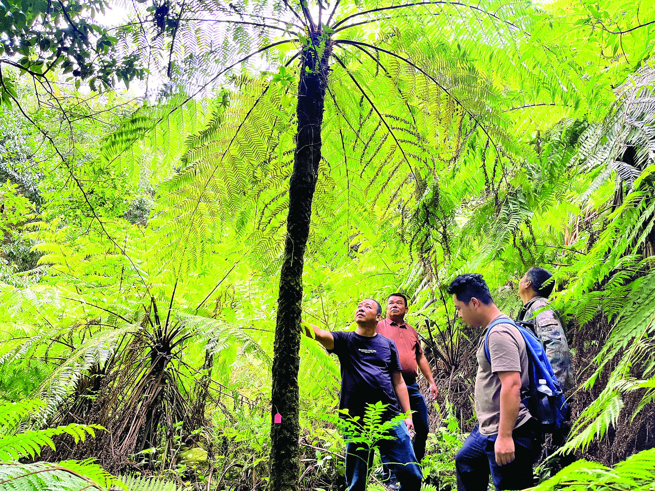 保護(hù)區(qū)工作人員測(cè)定發(fā)現(xiàn)的黑桫欏。
