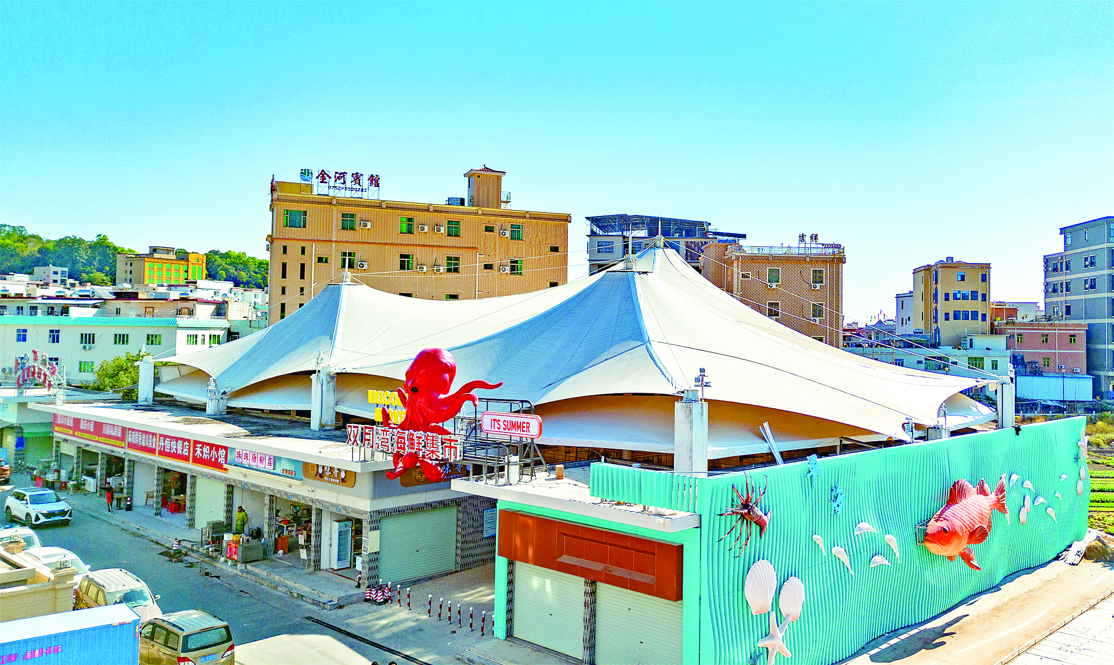 “寄居蟹‘爬’上墻了!薄澳憧,好可愛(ài)的河豚,肥嘟嘟的!薄昂么蟮氖唪~(yú),好逼真!比缃,不少游客來(lái)到平海鎮(zhèn)的龍泉大街上,都對(duì)海洋風(fēng)情統(tǒng)一打造的街容街貌贊嘆不已。平海鎮(zhèn)相關(guān)負(fù)責(zé)人介紹,這是該鎮(zhèn)不久前完成打造的濱海風(fēng)情示范主街,也是該鎮(zhèn)美麗?ài)祖?zhèn)“七個(gè)一”項(xiàng)目之一。據(jù)介紹,該鎮(zhèn)以龍泉大街為核心,打造全長(zhǎng)1.2公里的濱海風(fēng)情示范主街,以“湖青色+亮白色”為主色調(diào),完成外立面粉刷及全段瀝青路面鋪設(shè),新設(shè)停車位278個(gè),統(tǒng)一沿街200余家商鋪招牌風(fēng)格,96棟連片外立面提升,將寄居蟹、魚(yú)蝦等海洋元素融入街景設(shè)計(jì),迎來(lái)“全域美”的嶄新蛻變。
