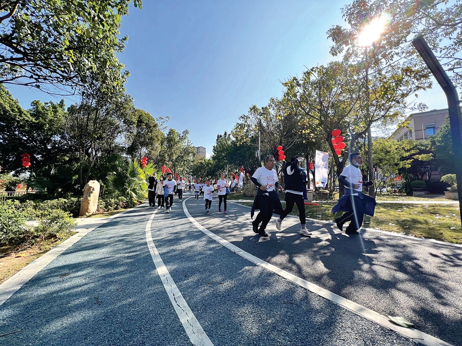 市民從惠陽區(qū)半島體育公園足球場開始長跑;葜萑請笥浾咴S文昌 攝
