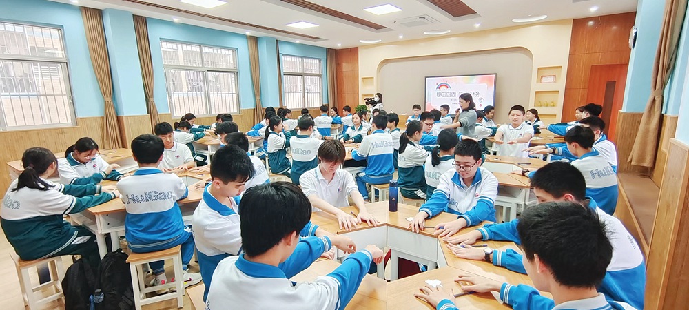 惠陽(yáng)高級(jí)中學(xué)學(xué)生以班級(jí)為單位參加團(tuán)體心理輔導(dǎo)課。