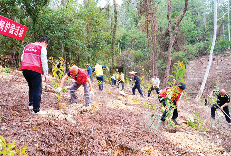 志愿者在永湖鎮(zhèn)開展義務植樹;葜萑請笥浾咴S文昌 通訊員呂慕晴 葉震 攝