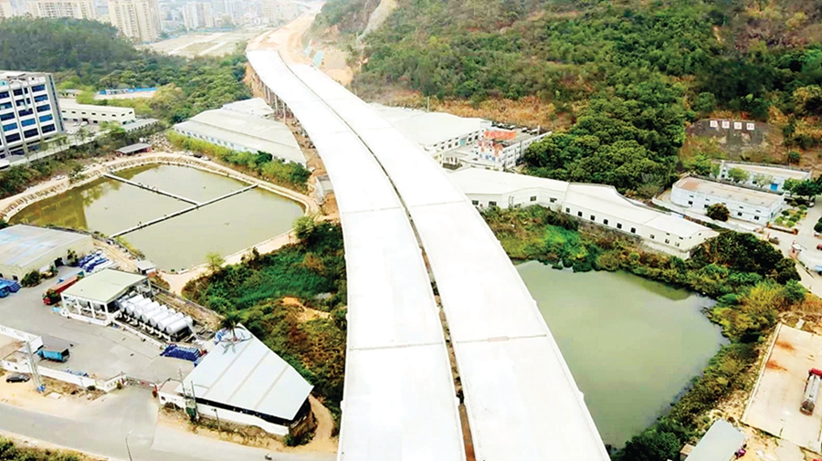 深莞惠紅色干線改建工程(一期)TJ3標段已建成的高架橋;葜萑請笥浾咴S文昌 攝
