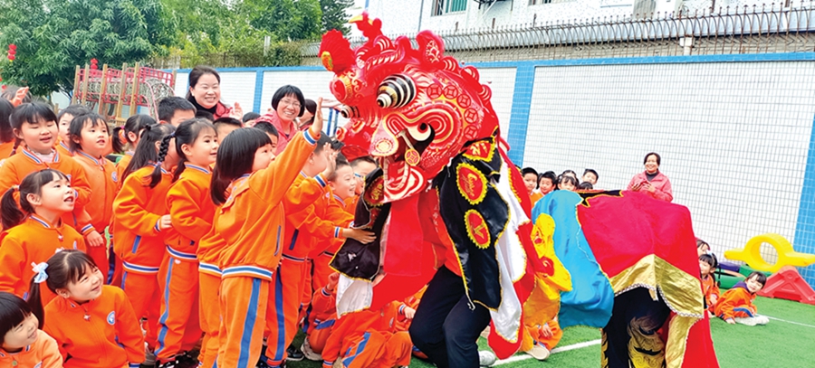 舞麒麟走進幼兒園。