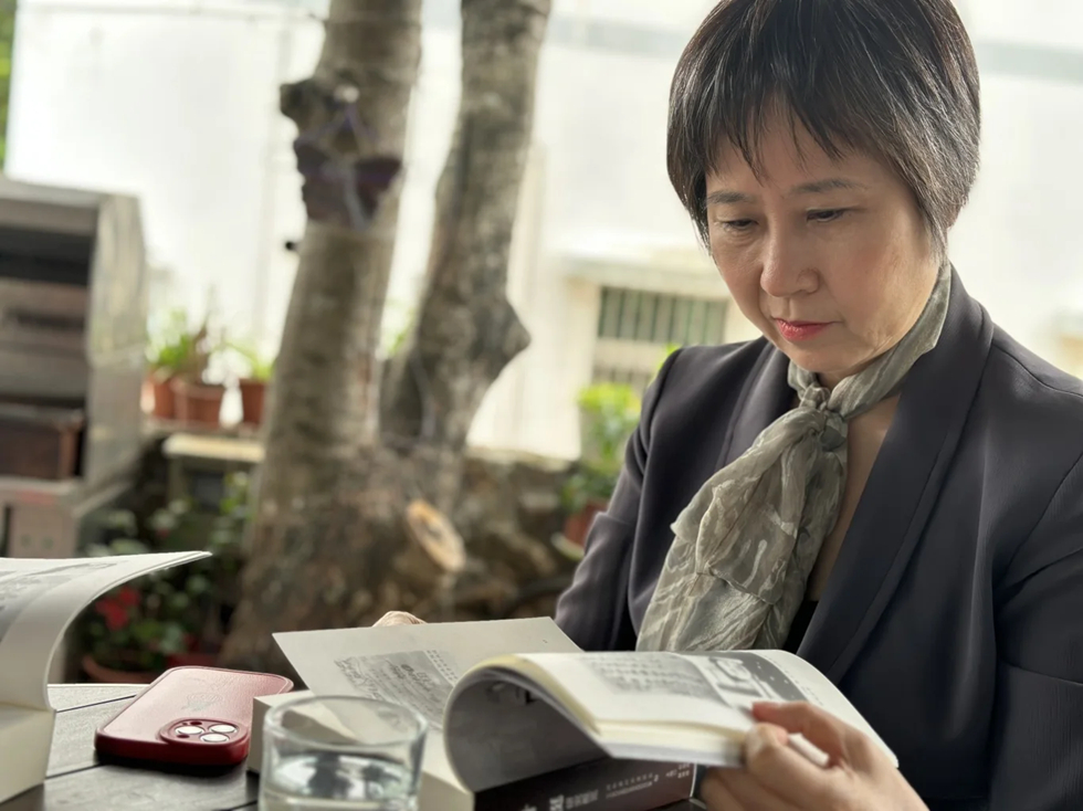 葉小燕閱讀關于爺爺葉挺將軍的書籍。