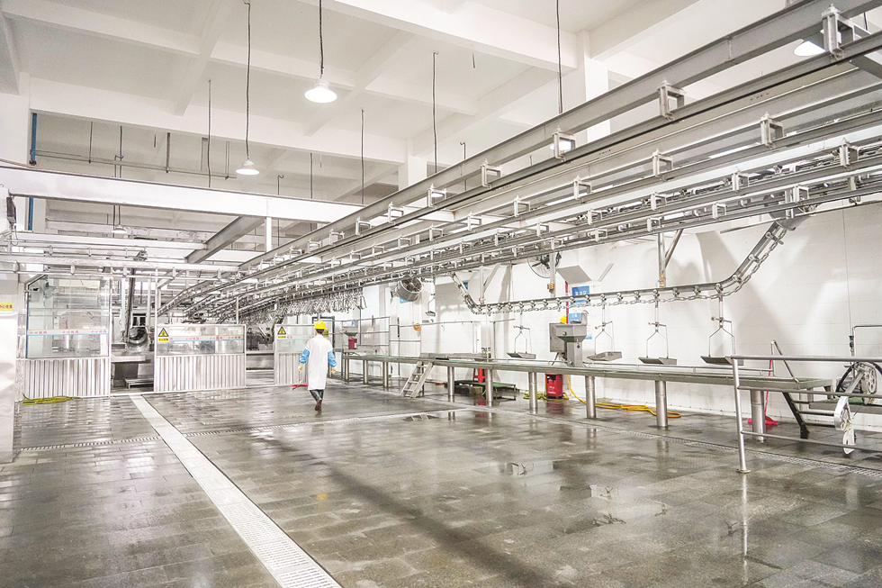 肉聯(lián)廠內(nèi)干凈整潔的投資促車間。