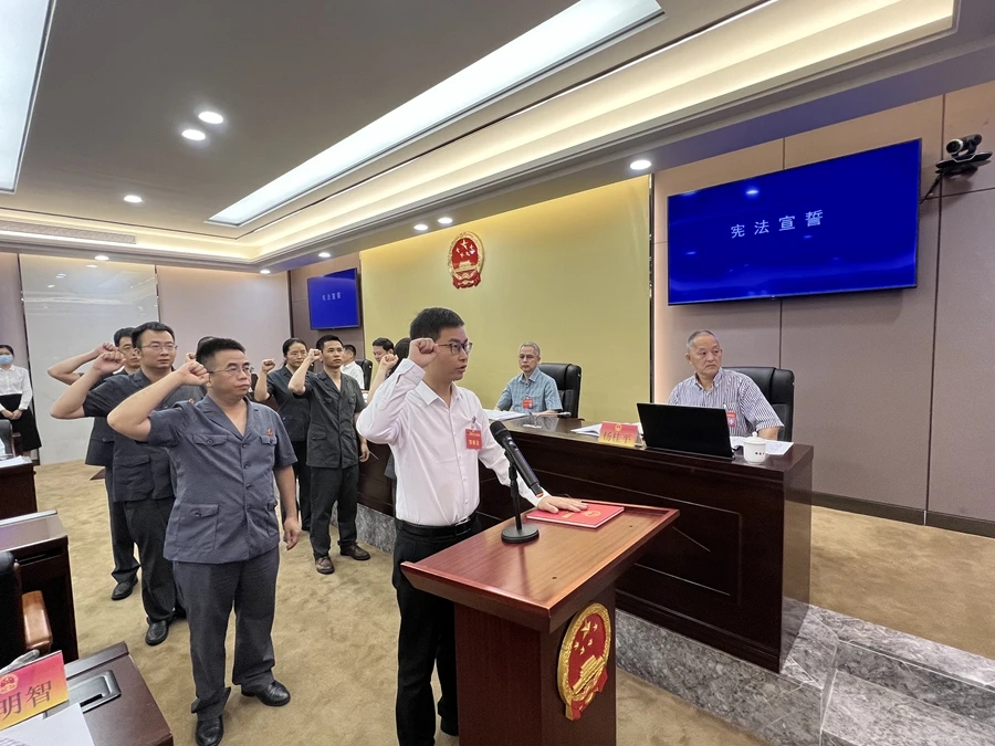 新任國家機(jī)關(guān)工作人員進(jìn)行憲法宣誓。