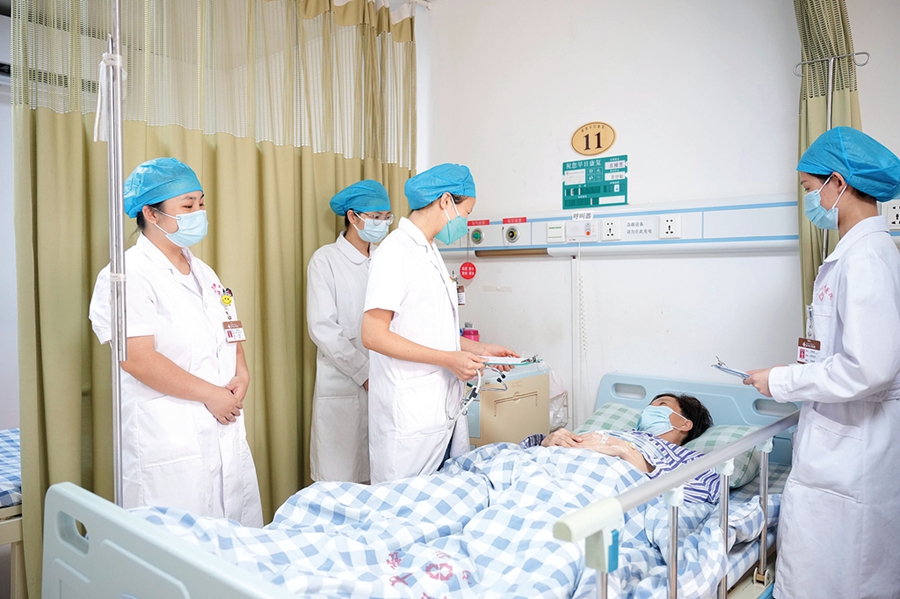 專業(yè)醫(yī)務(wù)團隊查房,并細心了解患者情況。