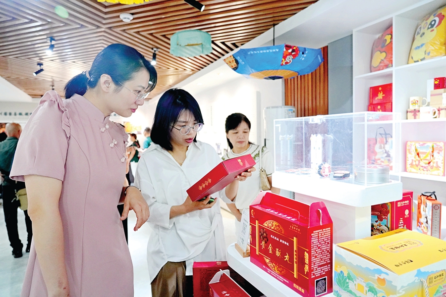 市民在參觀惠陽非遺文創(chuàng)展區(qū)。