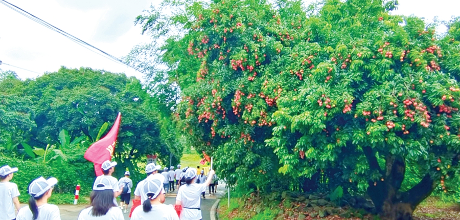 眼下正是荔枝豐收季,路邊一棵棵荔枝樹(shù)上掛滿了紅果子,著實(shí)惹眼!昂渺n啊,快給我拍照。”大家結(jié)伴而行,有說(shuō)有笑,拍照留念,并在徒步中開(kāi)展環(huán)保、反詐、安全等知識(shí)宣傳活動(dòng)。