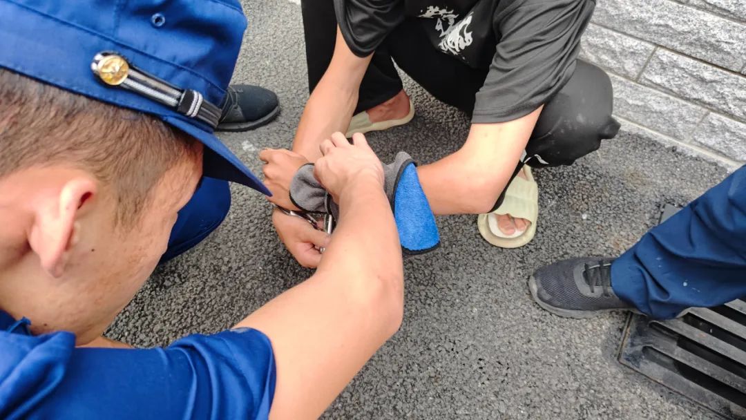 民警介紹,辦案過程中其中一名嫌疑人所戴手銬突然失靈,嘗試多種方式都無法將手銬打開,無奈之下只好向“鄰居”消防站尋求幫助。