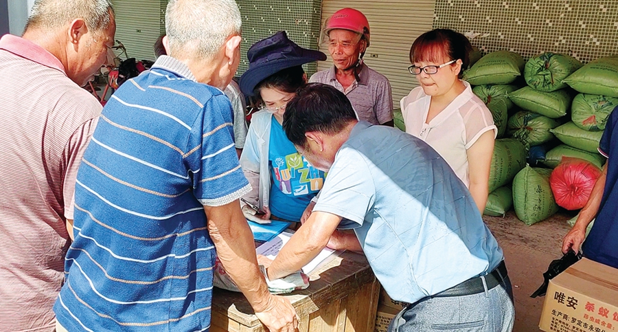 農(nóng)戶在現(xiàn)場(chǎng)登記領(lǐng)種子。