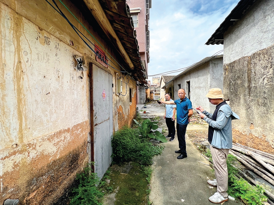 在黃春華(左二)的帶路下,惠陽區(qū)委黨史辦工作人員找到了黃世梅、黃開等革命先輩的舊居處,將豎起牌子,告知世人他們的革命故事。
