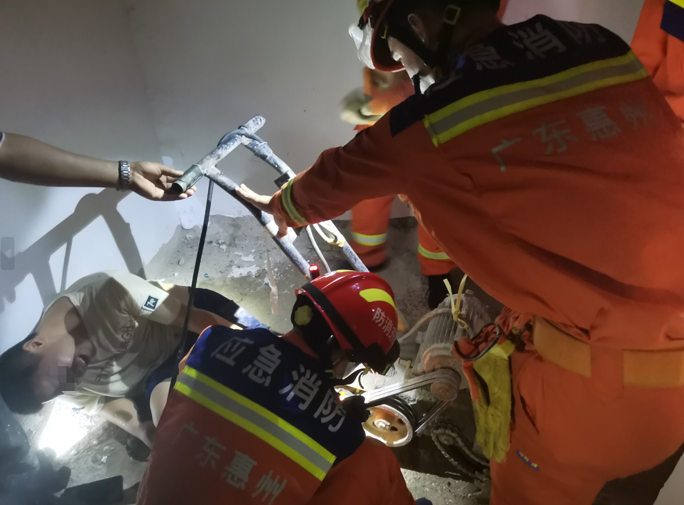 “我們這邊有人腳被卡在機器里了,請你們快點過來救人。”7月25日,惠州惠陽區(qū)新圩消防救援站接到報警稱一小區(qū)地下室,一名建筑工人的左腳被刨地機“咬”住。接警后,消防員立即趕赴現(xiàn)場救援。