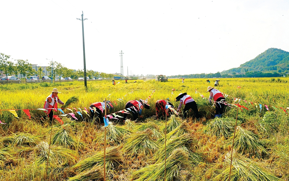 良井農(nóng)戶在收割水稻;葜萑請笥浾唿S尉宏 通訊員謝燕玲 攝