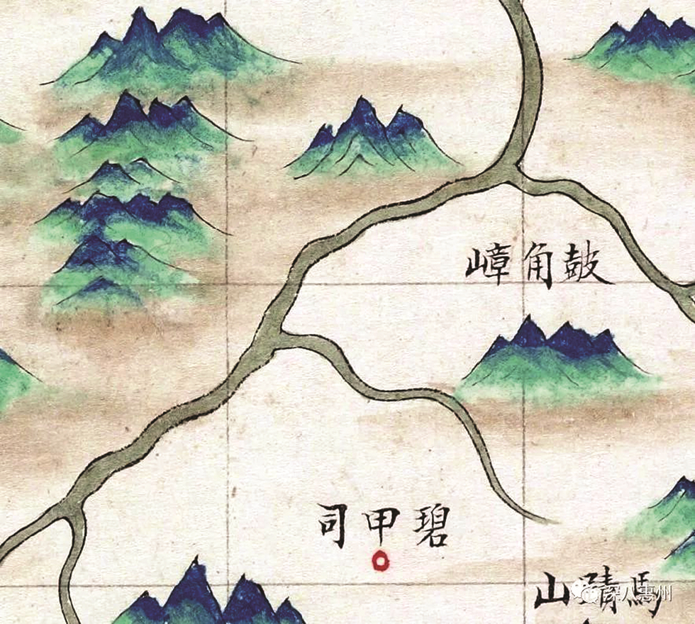 清乾隆輿圖的鼓角嶂與碧甲司。嚴(yán)藝超翻拍