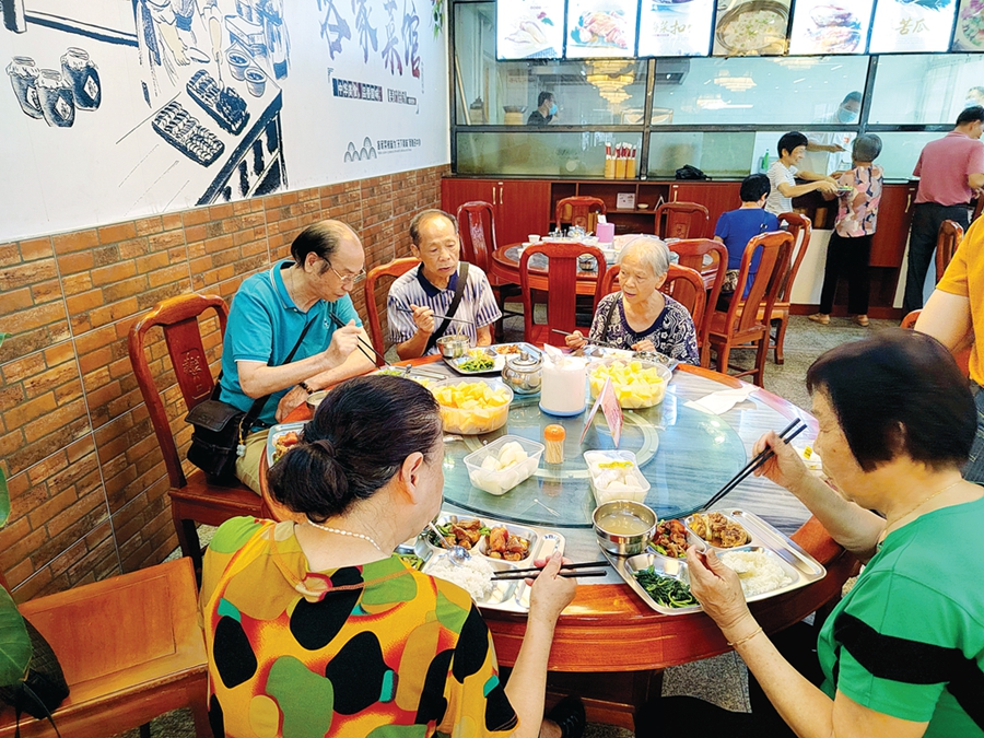 惠陽區(qū)政協(xié)以調(diào)研活動、專題協(xié)商會形式推動養(yǎng)老服務(wù)事業(yè)發(fā)展。這是老人在淡水街道松嶺社區(qū)長者食堂用餐;葜萑請笥浾唿S尉宏 通訊員黃潔 攝