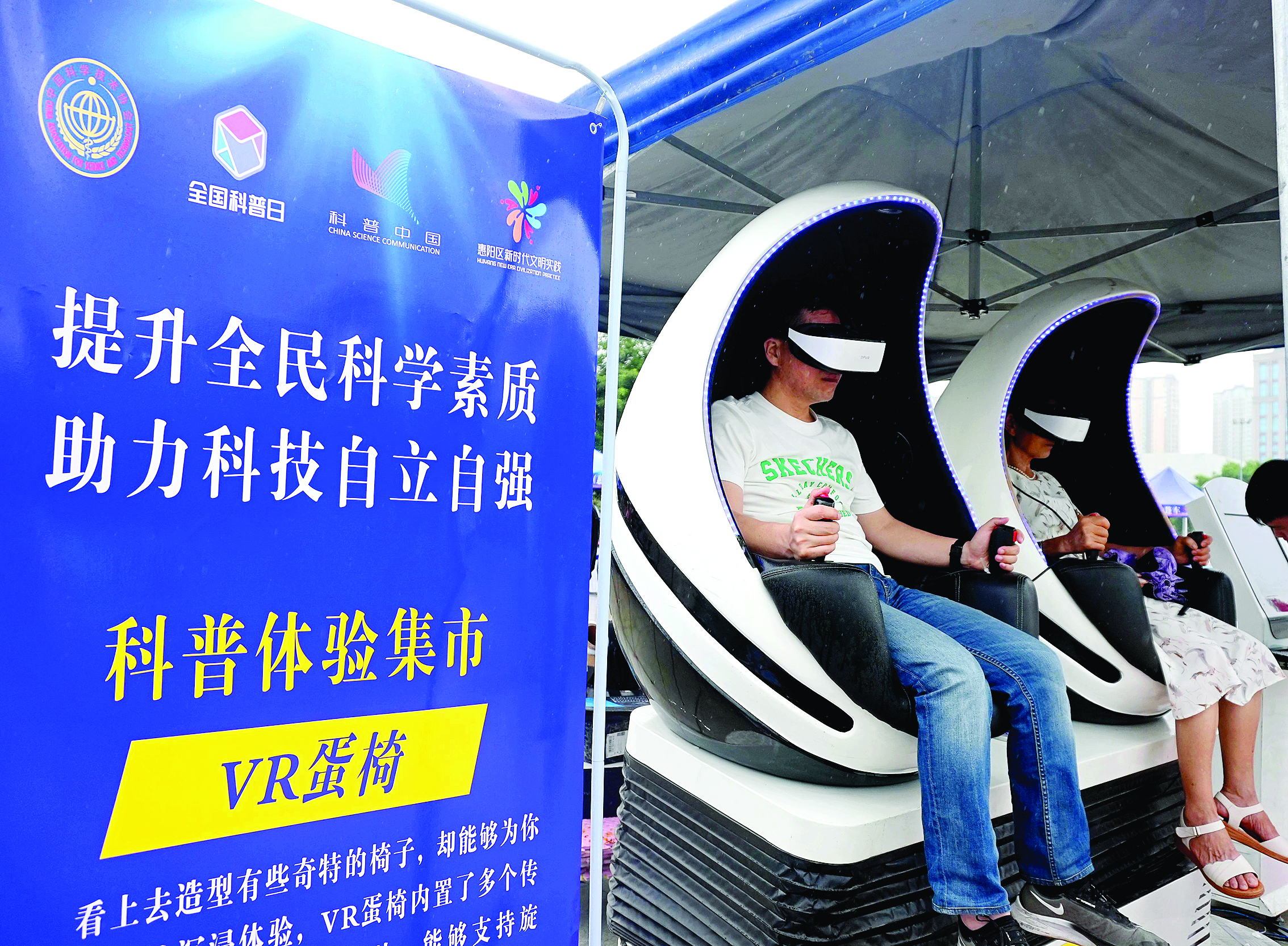 市民體驗VR蛋椅。惠州日報記者許文昌 攝