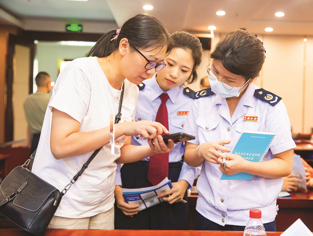 稅務(wù)人員作現(xiàn)場(chǎng)輔導(dǎo)。
