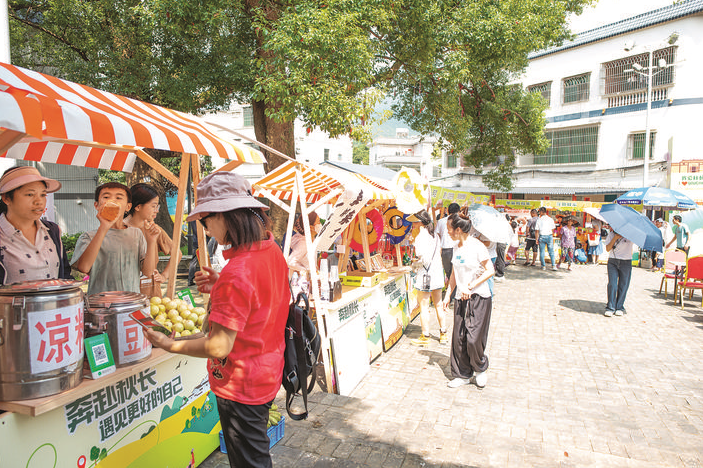 國慶當(dāng)天,“秋日集市”在惠陽秋長街道周田村古樹公園熱鬧開市。各種農(nóng)產(chǎn)品、特色小吃、非遺文創(chuàng)吸引了不少游客駐足和消費(fèi)。當(dāng)晚,“風(fēng)吹稻浪 秋之樂章”音樂會也在當(dāng)?shù)毓偕酱迩镆奥稜I基地舉行,5支樂隊(duì)輪番上場彈唱經(jīng)典歌曲,游客沉浸式感受惠陽獨(dú)特的鄉(xiāng)村魅力與活力。