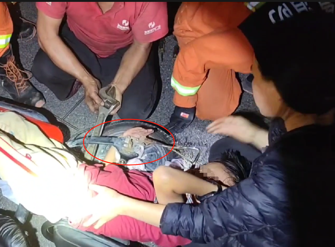 一小孩因交通事故導(dǎo)致手被卡在電動車車輪處