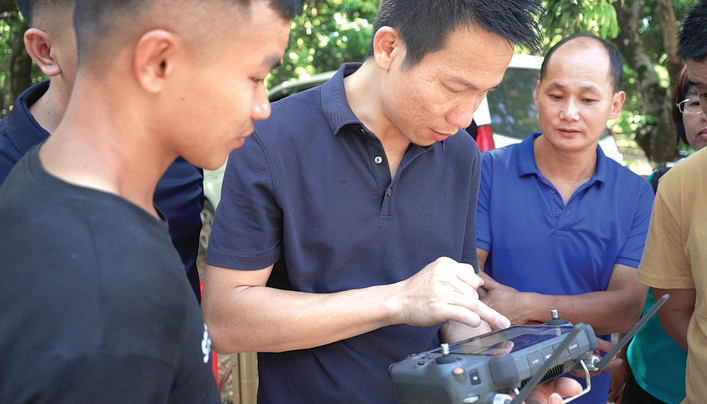 鎮(zhèn)隆鎮(zhèn)荔枝生產(chǎn)協(xié)會(huì)會(huì)長葉賢亮介紹,往年政府部門會(huì)利用荔枝生產(chǎn)閑時(shí)對(duì)果農(nóng)開展培訓(xùn),如病蟲害防治、矮化樹木知識(shí)等,這是首次開展無人機(jī)技能培訓(xùn),通過使用科技手段,省時(shí)省力也降低成本!耙越o60畝荔枝林打藥為例,傳統(tǒng)方法兩個(gè)人兩天需要2000斤水才能打完,如今采用一臺(tái)無人機(jī),3個(gè)小時(shí)只需要500~700斤水就可以打完!比~賢亮介紹,蟲害在夜間出沒頻率高,無人機(jī)不受時(shí)間限制可持續(xù)作業(yè),因此夜間消殺除害效果好,效率提高了,成本也降低了。最后,參訓(xùn)人員還參加了理論、模擬器和實(shí)操考試,有些學(xué)員順利考取了農(nóng)用無人機(jī)飛行證書。