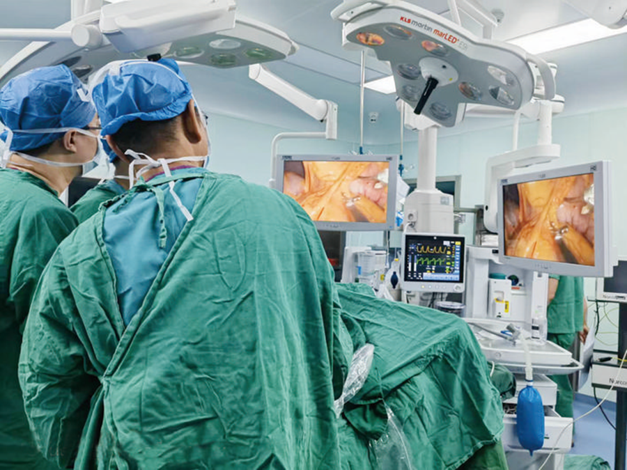 院內(nèi)進(jìn)行腹腔鏡右半結(jié)腸癌根治術(shù)。