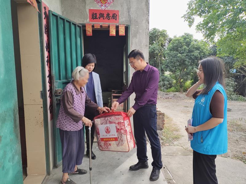民政部門工作人員給困難群眾送上防寒物資。 惠州日報記者許文昌 通訊員賴允仕 攝