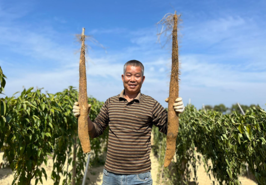 “沙土地里的淮山粉葛很快就可以開挖了。”今年55歲的劉瑞建,去年種植了80畝淮山粉葛,因新圩淮山農(nóng)業(yè)公園引來了不少游客,村里的農(nóng)產(chǎn)品熱銷,價格給力,于是今年他擴大了種植規(guī)模,面積達(dá)到了180畝,對這一造淮山粉葛的收益充滿信心。