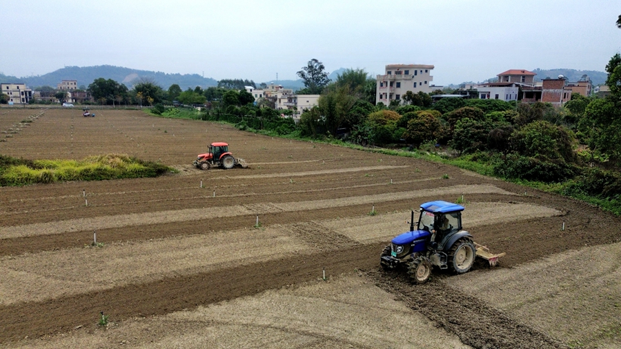 春來風(fēng)光好,田間備耕忙。3月14日,惠陽區(qū)良井鎮(zhèn)矮光村機(jī)器轟鳴、熱鬧非凡。一頭頭“鐵牛”準(zhǔn)時赴約,在千畝良田中奮蹄穿行,翻新沃土等待播種。縱橫交錯的田埂猶如一行行五線譜,譜寫著搶抓農(nóng)時忙春耕的“進(jìn)行曲”。