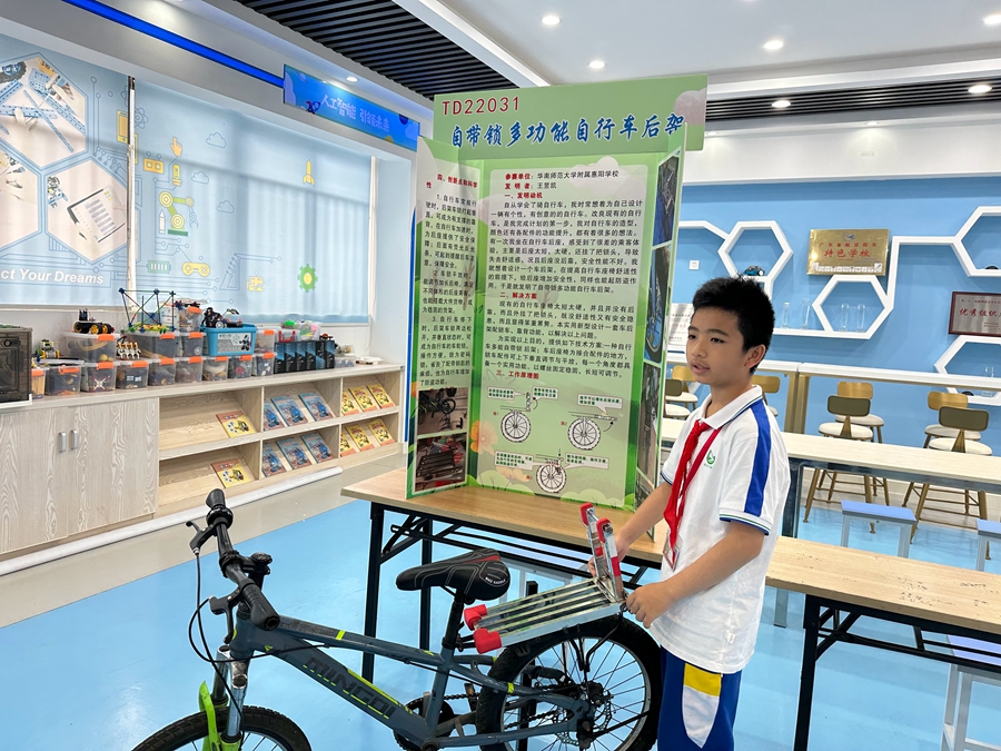 王昱凱的作品“自帶鎖多功能自行車后架”獲得大賽專項獎。