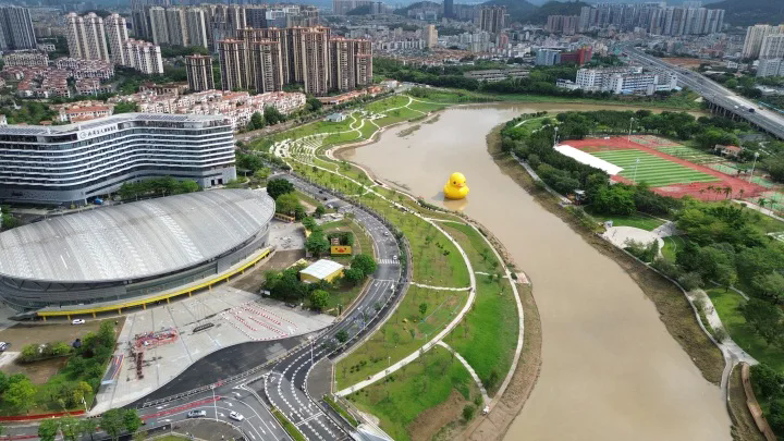 大黃鴨已經(jīng)亮相淡水河;輬(bào)全媒體記者 許文昌 攝