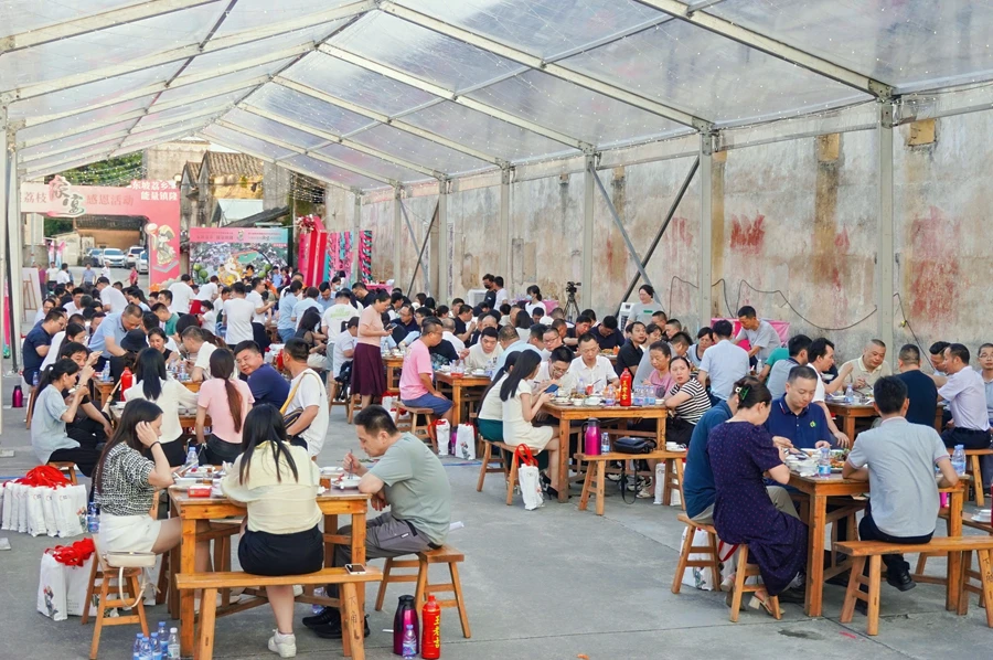 活動邀請企業(yè)家、鄉(xiāng)賢、果農等約500人歡聚一堂,共享荔枝季的甜蜜,大家在品嘗中共話鎮(zhèn)隆發(fā)展。