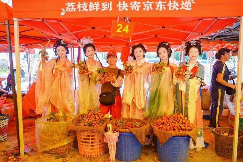 漢服愛好者在現(xiàn)場為鎮(zhèn)隆荔枝打call。
