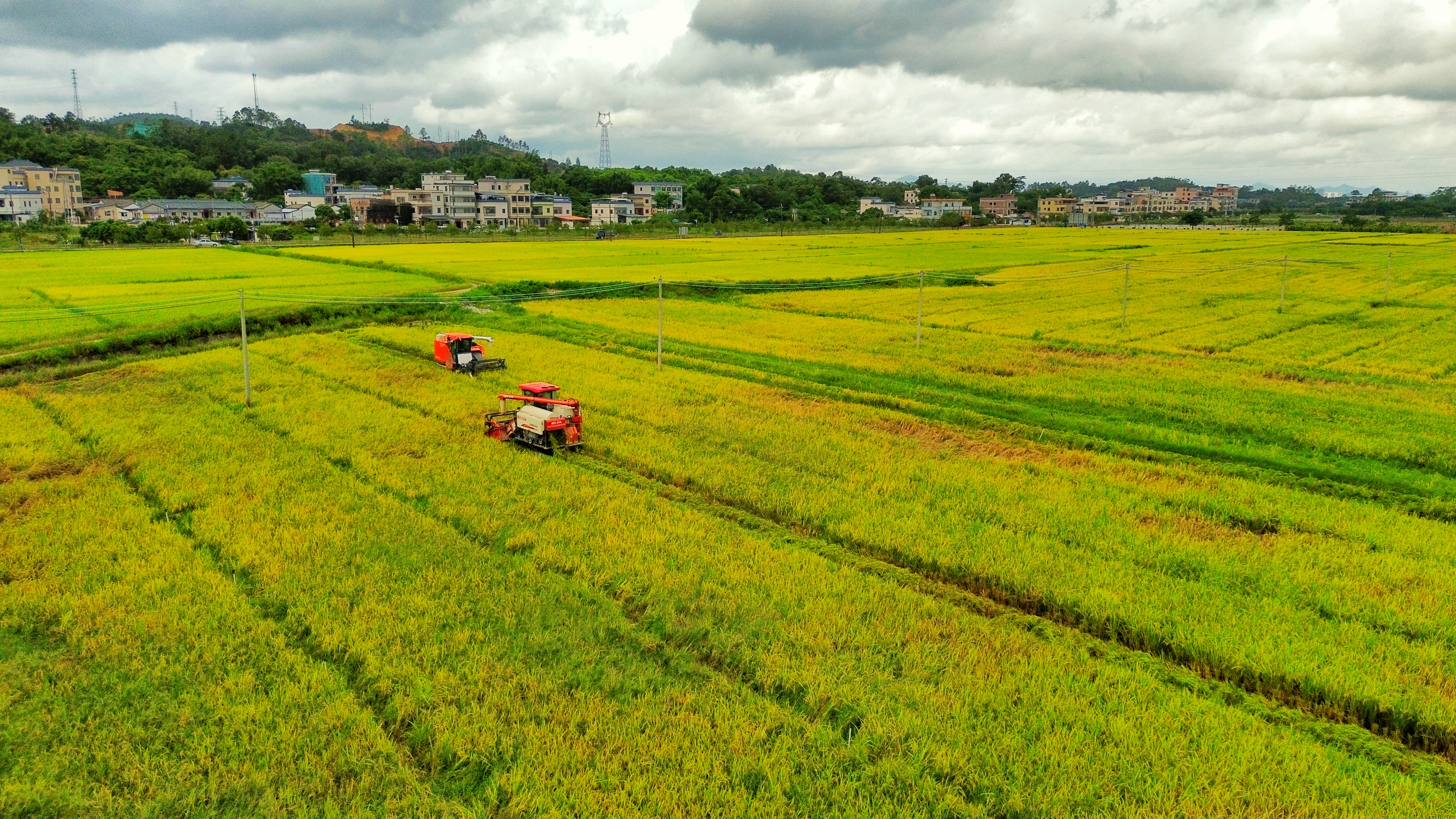 收割機在田里收割早稻;葜萑請笥浾咴S文昌 攝